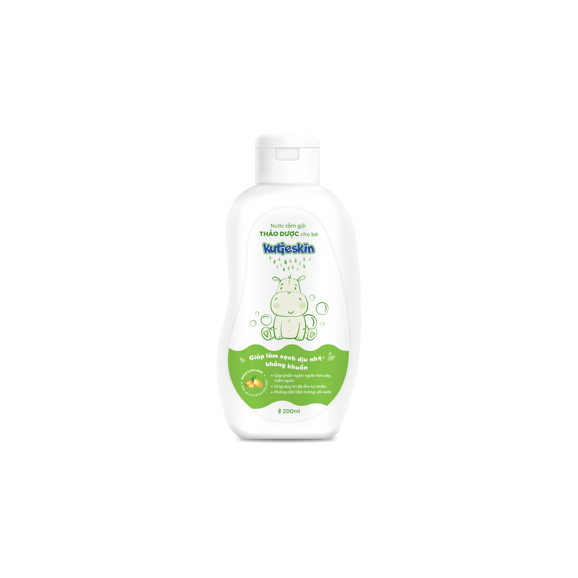 Nước tắm gội thảo dược cho bé với thành phần chính là Curcumin và 13 loại dược liệu giúp làm sạch dịu nhẹ; góp phần ngăn ngừa và làm dịu da khi bị: rôm sảy, mẩn ngứa, mụn nhọt, hăm da, lông măng ở trẻ sơ sinh và trẻ nhỏ